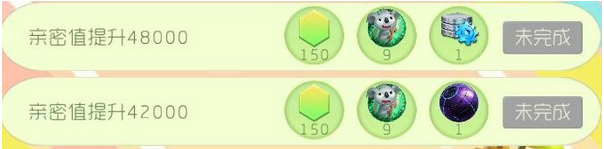 亲密值提升16000,可得彩豆*50,松仁蛋糕*2,空间能量箱*2;