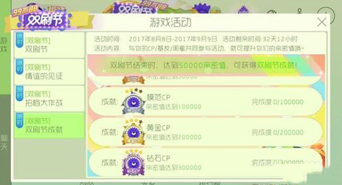 双刷节结束时,达到50000亲密值,可获得双刷成就!