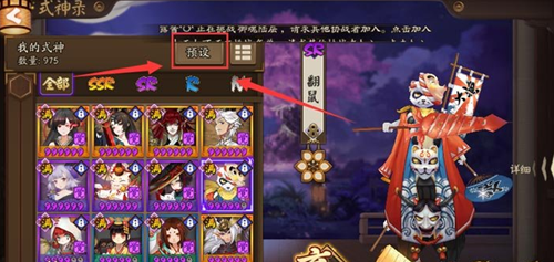1、在式神录里点击“预设”(体验服8月9日更新,正式服后续会加入)