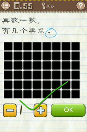 1、最囧游戏2第55关的要求是:再数一数有几个黑点.如下图。