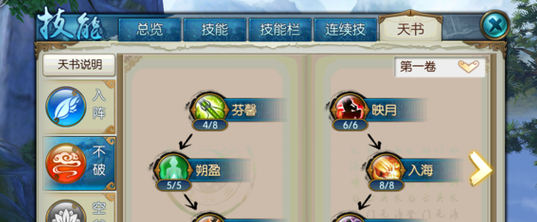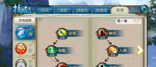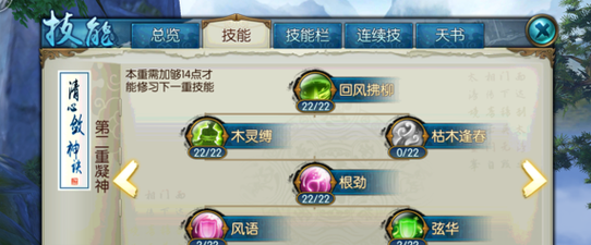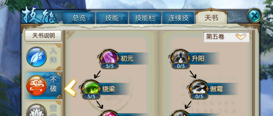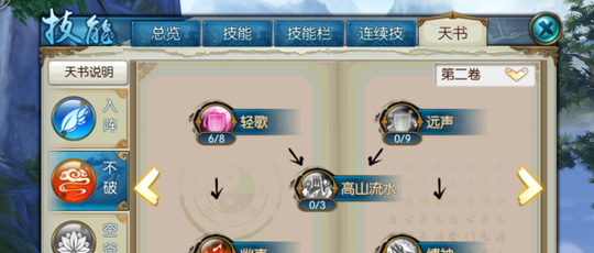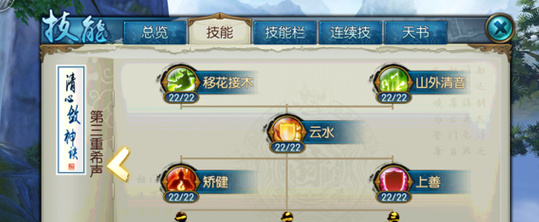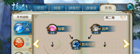 分析:这套加点主要追求连招爆发,考虑到技能栏的位置,所以放弃了枯木逢春,而且隐身本身也能回血。技能里面回风拂柳加满主要是为了群体伤害,这里也可以只加1级,把技能点加到被动上面。天书中有很多不错的加成但考虑到点数有限,所以也舍弃了一些,为了点出辅不破的第五卷。
