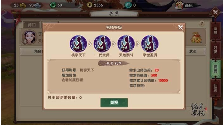 在寻仙手游中,徒弟有每日日常,通过帮助徒弟完成日常任务可以获得丰厚奖励。师父可以获得师德值,师德值可以在师徒系统界面右上角的商店中购买物品。师德值不仅可以兑换装备,还可以换非常不错的宠物。