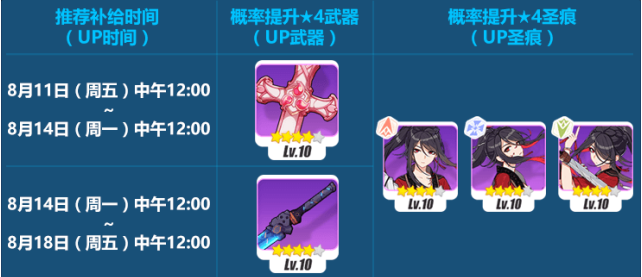 ※本次活动中,指定武器/圣痕在UP时间内,相比同星级的武器/圣痕,UP武器/圣痕的获取概率更高