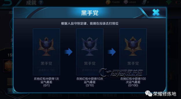 王者荣耀黑手党成就怎么完成,黑手党成就怎么获得,王者荣耀新增黑手党成就,非酋的象征,黑手党成就完成难度有点高,需要在抢红包中100次获得运气最差,王者荣耀黑手党成就怎么完成,西西带来黑手党成就快速完成攻略,希望对大家有所帮助。