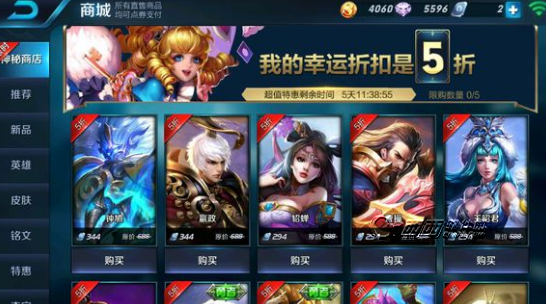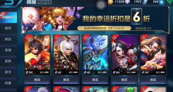 在抽取了对应的折扣之后,玩家就可以以折扣价格购买神秘商店里对应的游戏道具了,主要的游戏道具就是英雄皮肤。