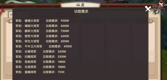 各位仙友按活动中所获得的功勋总量排名,当累积功勋达到需求后可被授予各种军衔。