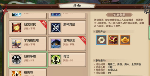 2.活动要求:玩家等级达到30级以上,且门派参加仙府争霸活动