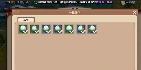 侍宠的放生大多是在宠物界面进行的,在这里可以选择要放生的单个宠物进行放生,不过还有另外一种放生途径,那就是在背包中选择一键操作,在这里我们可以对单个或多个宠物蛋进行勾选,然后对勾选中的宠物蛋进行放生,放生后则可以或得到大量的奖励。