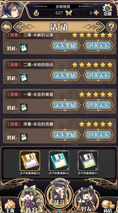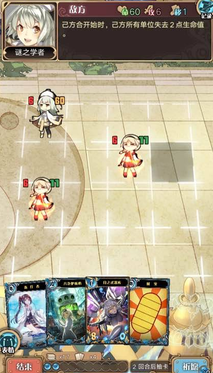 二章敌人为天照 配合俩附属神每回合叠三盾回两血并且永久+1攻 和上一章很像但是防御能力更强 输出不够的话需要谨慎考虑打法
