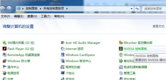 如果找不到用图形处理器打开的选项的小伙伴别着急,打开控制面板,找到NVIDIA控制面板。