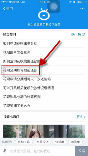 可以进去资讯界面,点击【花呗分期如何提前还款】