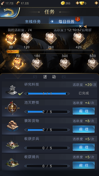 日常有清野的活动,有张角、董卓、袁绍等,这些活动,区参加可以获得武将卡还有各种道具加速奖励,还有各种资源奖励,只要在活动内完成对应的任务,消灭张角等均可获得海量奖励。
