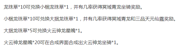 大捆龙珠草*5可兑换火云神龙星魄*1