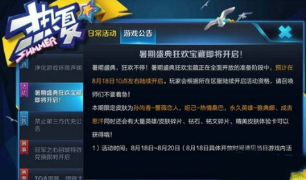 王者荣耀暑期狂欢限定皮肤有哪些?王者荣耀在8月18日-20日期间开启暑期狂欢宝藏,玩家可以通过抽王者荣耀暑期狂欢宝藏,有机会获得限定皮肤。接下来西西就给大家带来了王者荣耀暑期狂欢限定皮肤一览!