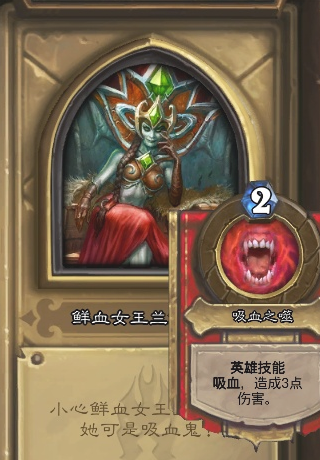 第一个Boss兰娜瑟尔表面上什么也看不出来,实际的名堂都在开战后:第一回合她会变掉玩家的英雄技能,新技能“吸血撕咬”会强制玩家buff一个没被buff过的随从。如果玩家当回合不能打出新的随从(或不能产生新的衍生物),就必须让Boss的随从接受这个+2/+2的buff。