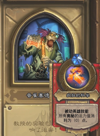 崔普赛德教授表面上也看不出什么名堂,每个人(或者说非魔兽老玩家)的第一反应就是带一大堆奥秘、过牌以及谢娜张杰就开干了,但实际上是有多段战斗的。这个Boss有15点初始护甲,一旦护甲被打掉就会触发变身,一共会变身两次: