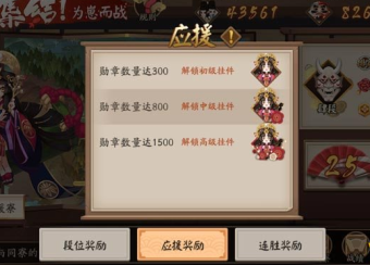 在为崽而战第二阶段进行战斗,勋章数量达到300、800、1500分别可以获得应援的式神挂件图标
