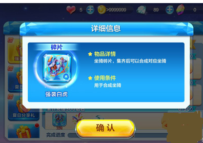 天天酷跑强袭白虎碎片是一个游戏更新完之后出来的道具,只要玩家小伙伴们在游戏中充值480钻石,就可以获得完整的10个天天酷跑强袭白虎碎片。然后10个强袭白虎碎片就可以直接获得完整的强袭白虎啦!