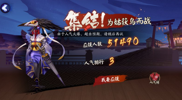 阴阳师为崽而战选不了式神怎么回事,为崽而战人气火爆超出预期请稍后再试。阴阳师集结为崽而战的活动开启了,玩家可以选择自己喜欢的式神进行应援哦,不过小编发现有玩家碰到选不了式神的情况,显示由于人气火爆超出预期请稍后再试,阴阳师为崽而战选不了式神怎么回事,西西小编来为大家介绍。
