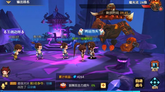 ② 土豪版:顽石巨人+主角+龙女+鬼面+天妖星(或任意高伤害的单攻)