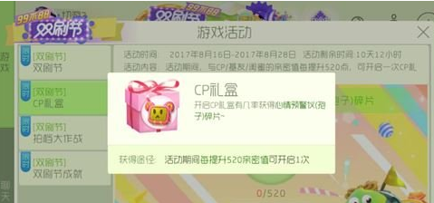 获取途径:活动期间每提升520亲密值可开启1次。