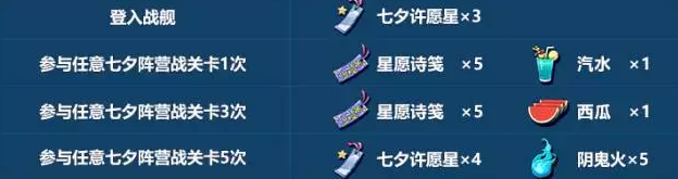 2)阵营活动关卡均有参与次数限制,舰长可以使用道具七夕许愿星来兑换参与关卡的次数: