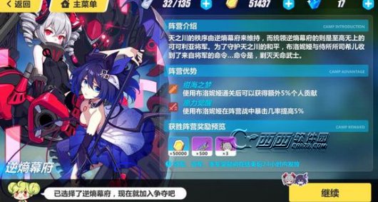 ◆逆熵幕府阵营使用布洛妮娅出战、天命武士阵营使用八重樱出战,可以获得5%贡献加成。