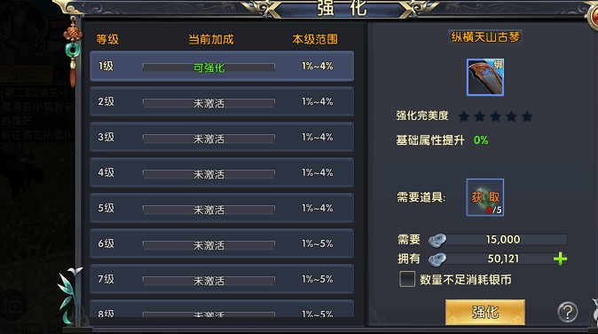 游戏中设置的强化等级一共有15级,而每一级又有强化加成度。每成功强化一级会随机提升该等级的强化加成,最低1%最高5%,玩家可以对已激活的强化等级进行重铸达到最高加成效果。逍遥是一个远攻职业,必须保证伤害足够在敌人近身前就秒掉对手。所以这里建议玩家先强化武器,毕竟武器是伤害的主要来源,接着是首饰,最后才是防具。