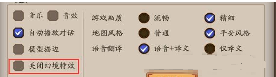 2、在设置界面中,选择“关闭幻境特效”即可关闭辉夜姬的幻境特效了。