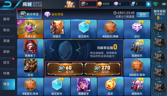 王者荣耀荣耀积分获得方法,积分夺宝积分获取攻略。王者荣耀将点券夺宝改为了积分夺宝,玩家使用荣耀积分即可进行夺宝,60积分可以进行一次夺宝,不少玩家都很喜欢,下面西西小编为大家带来王者荣耀荣耀积分获得方法。