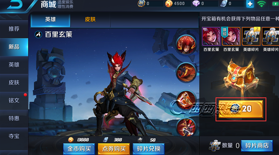 2、 积分夺宝和新品抽英雄/皮肤不再使用点券进行支付,而是改为使用荣耀积分,价格不变。