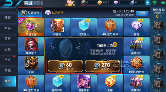 以上就是王者荣耀积分夺宝荣耀水晶怎么抽,积分夺宝抽奖技巧分享,请大家继续关注。
