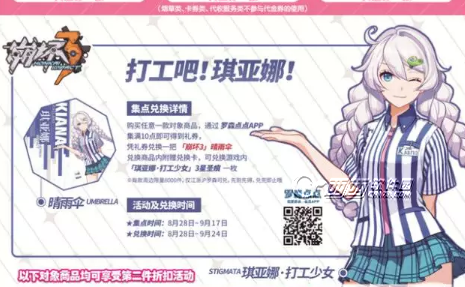 除此之外,在礼品中还将附带「琪亚娜·打工少女」圣痕1张!(装备位置为“中”)