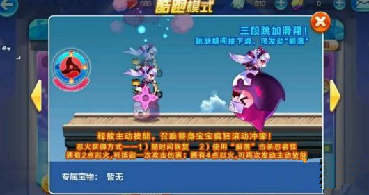 暗夜零角色的技能非常有特色,玩家可以在奔跑中累计忍火,来触发技能,而且累计4点忍火可以直接发动技能,暗夜零应该属于越跑加分越高类型的角色。