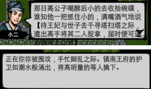 给完药草后小二提供给你一个重要信息:高明量设计在段和誉和镇南王妃到千寻塔上香的时候抓住他们来要挟段正淳