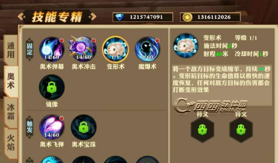 技能介绍:这是一个能把人恶心的专精,因为奥术的变形术能把敌人变成小绵羊,最主要是没有冷却!没有冷却!没有冷却! 也就是说只要你有时间,手机有电,你能用这个技能把敌人羊到天荒地老!!!但是无法对敌人造成伤害使这个技能显得鸡肋。主动技能其他的有分身术和魔法导弹。就不做多说明了。