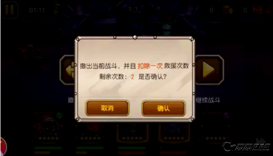 新版本同样对于战斗中的意外事件进行了优化,同样单人模式下也只有3次救援机会,但可以通过类似于远征和工会战刺杀中的撤退键来完成,在己方或者敌方单位全部阵亡之前垫撤退,撤退后扣除一次救援机会,本次战斗无效,敌我双方英雄状态恢复到战斗前,并且可以立马进行下一次战斗(老版本必须home退游戏重进,并且还要等待3分钟才可以再次挑战)。