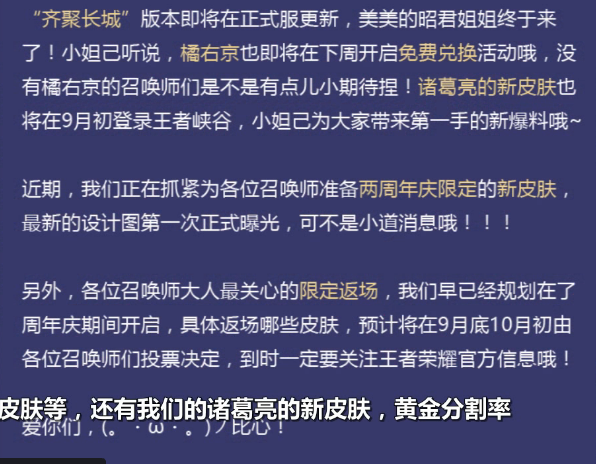 王者荣耀黄金分割率9月5日上线是真的吗,王者荣耀妲己情报战爆料了诸葛亮黄金分割率9月初上线的消息,黄金分割率作为诸葛亮史诗皮肤,那么王者荣耀黄金分割率9月5日上线是真的吗,西西带来诸葛亮黄金分割率9月上线时间,希望对大家有所帮助。