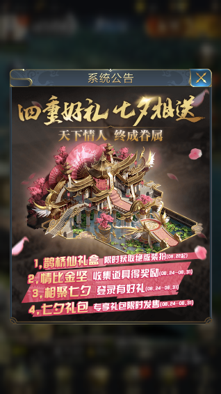 活动时间:8天整,需要收集牛郎笛和织女琴。