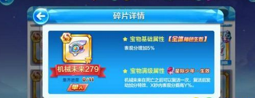 以上是玩家卡数据获得的星际少年宝物属性,星际少年宝物属性已经非常明确了。星际少年宝物属性中有一个宝物拥有复活一次的效果,提升星际少年表现分和长跑能力是非常大的。
