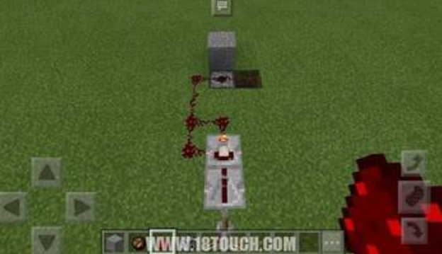 其次,我们需要点击方块面对着发射器的一面放上红石,然后就可以按照如图所示的方法接上各个部件(注意:中继器需要点击一下激活)