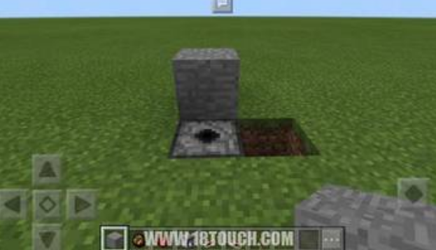 接着我们在空地上水平平行挖2个坑(2*1)并且放入发射器(注意发射器的口子需要外露),然后我们放上一块方块在发射器斜上方