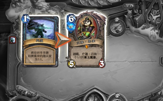 卡组带异变是因为我想看能不能退化被禁锢的灵魂,不过我6费直接打死了没用到,有人测试的话帮我说一下。