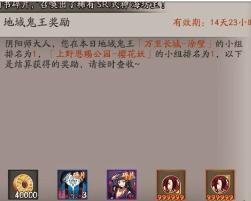 阴阳师地域鬼王声望挑战奖励介绍