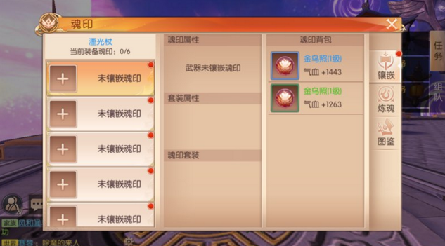 也可以消耗道具“精魂铁”对魂印进行炼魂,提高魂印的等级从而获得更多的属性加成。