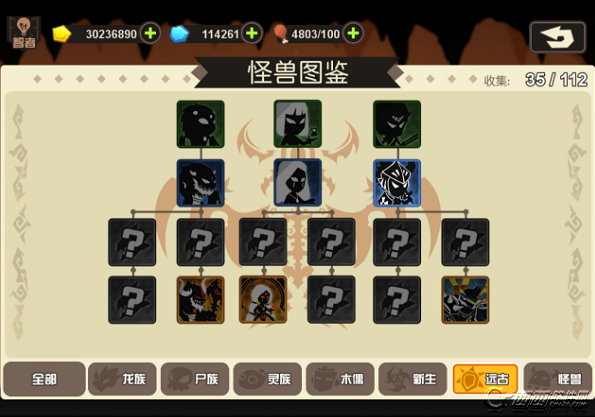 5、最后说说前排和后排的种族选择问题,这里给大家说一下,尸族的防御属性和恢复能力(吸血)是最出色的,龙族的优势是伤害,但多为近战,灵族擅长控场和单点(指定目标的击杀能力),木偶族擅长保护。大家可以根据种族的特点进行对应怪兽的选择,具体的搭配就见仁见智了,没有固定的搭配,很随意~