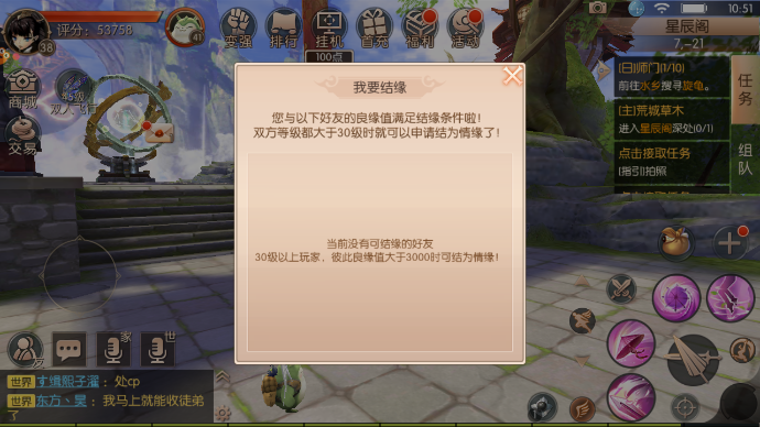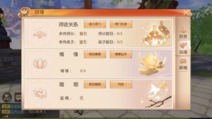 4.由于好友都是临时添加的,没有怎么互动,良缘值不够所以不能结情缘。不过大致的玩法就是这样啦。