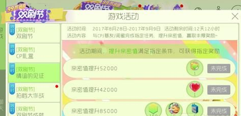 活动内容:与CP/基友/闺蜜完成指定任务,提升亲密值,赢取丰厚奖励~