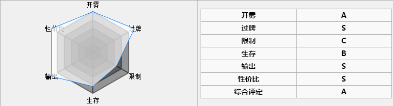 开雾:A 水蛭子配合道二有着过牌+开雾的能力。用这样的阵容,牌库内自然会多放低费神迹,所以开雾能力不一般。除了神迹开雾,太公望配合弹幕开雾也行。基本为第二回合就能发现敌方,但主要是随机开雾 所以开雾能力评为A