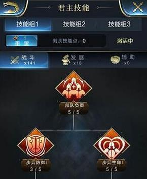 优点:战斗型君主技能可以给不同兵种增加生命力,增强他们的防御能力和攻击能力,学习战斗型技能可以让军队爆发出强大的能力。